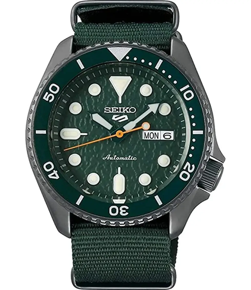 This timepiece is distinguished by a dark gray stainless steel case with a glass case back. A stunning green dial, brilliant greenish hands, and bold dot indicators stand out against the background for easy viewing. This wristwatch is unique because it has an analog automatic movement with a 4R36 caliber that makes it possible to keep time as accurately as possible. This version is an excellent choice if you want a watch with distinct aesthetics and impressive functions. With the Seiko 5 Sports SRPD77K1, you can have a strong, attractive, and affordable wristwatch for less than $350.